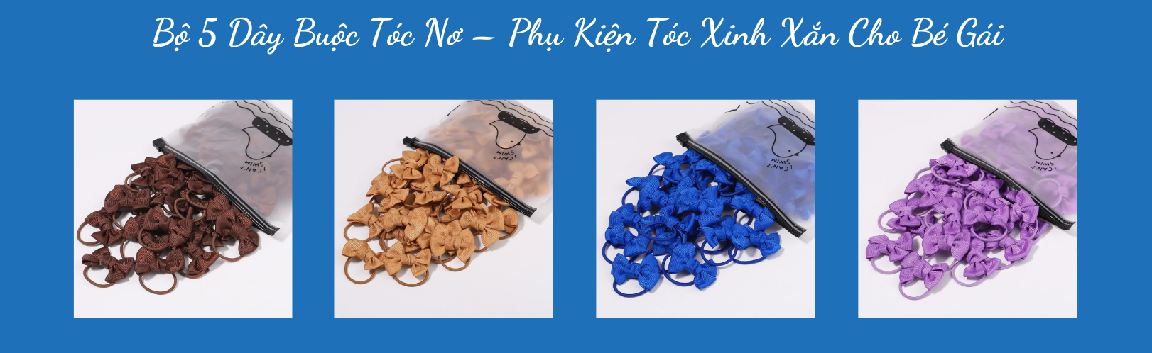Trong thế giới phụ kiện dành cho bé gái, những món đồ nhỏ nhắn như dây buộc tóc nơ luôn chiếm trọn cảm tình nhờ sự dễ thương, tiện lợi và đa năng. Một bộ dây buộc tóc không chỉ giúp mái tóc gọn gàng hơn mà còn là điểm nhấn thời trang khiến bé tự tin và đáng yêu hơn trong mọi hoạt động hằng ngày. Bộ 5 dây buộc tóc nơ chính là lựa chọn hoàn hảo cho các bậc phụ huynh muốn mang đến cho bé một phụ kiện vừa đẹp, vừa an toàn.